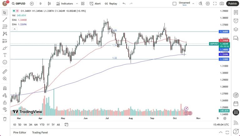 از منظر تحلیل تکنیکال، بازار GBP/USD رفتار نسبتاً خنثی را از خود نشان میدهد. این جفت ارز در حال حاضر بین میانگین متحرک نمایی ۵۰ روزه و ۲۰۰ روزه قرار گرفته است. علاوه بر این، فعالیت معاملاتی اخیر در حدود سطح ۱.۳۴ متمرکز بوده که نشاندهنده میانه محدوده تثبیت شده است. این محدوده از کف ۱.۳۲ تا سقف ۱.۳۶ امتداد دارد. از آنجایی که قیمت در میانه این محدوده نوسان میکند، منطقی است که قیمت فعلی بازار را نزدیک به ارزش منصفانه در نظر بگیریم.